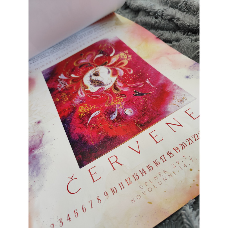 Pro každý měsíc je obrázek, označeny fáze měsíce, víkendy a svátky. Je také přidán jeden bonusový obrázek, který máte pro Radost. Kalendář obsahuje motivační texty a otázky.