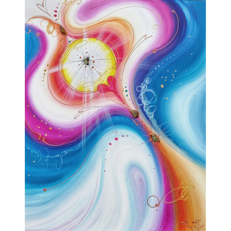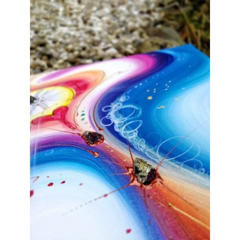 A najednou přijde chvíle, kdy víme, že si můžeme říct: JÁ JSEM. Malba doplněna CHALKOPYRITEM.