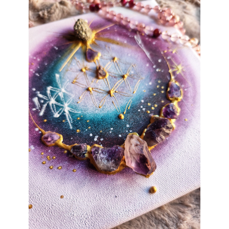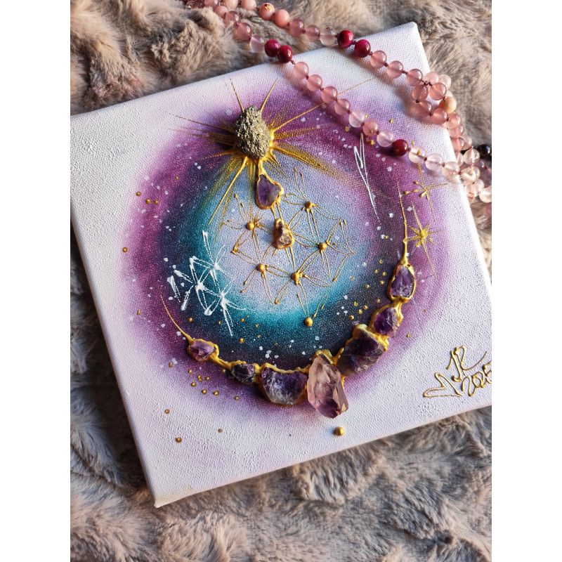 Jeho hlavní myšlenkou je, že nikdy nejsme sami. Malba doplněna AMETYSTEM a PYRITEM.