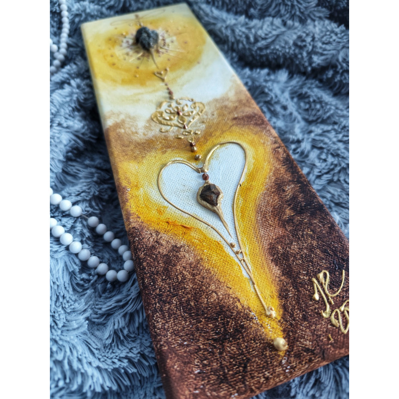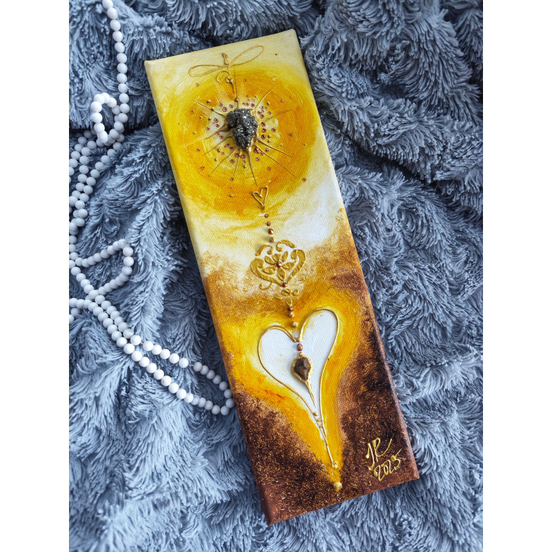 Je pro nás sluncem, které je energií a čistotou a také zemí, která je naším domovem. Malba doplněna PYRIT, TYGŘÍ OKO.