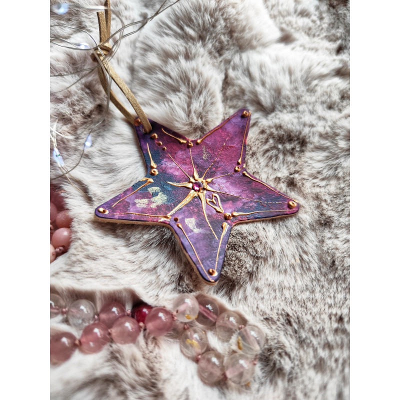 Doplněna autorskou malbou, kamínkem Swarovski a koženým očkem.