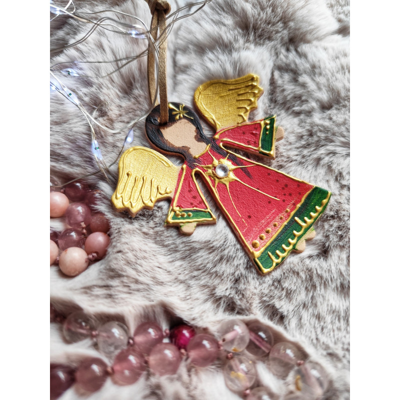 Doplněna autorskou malbou, kamínkem Swarovski a koženým očkem.