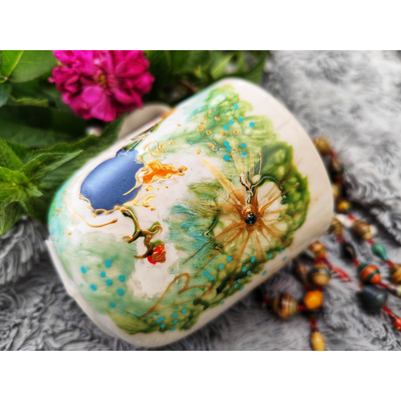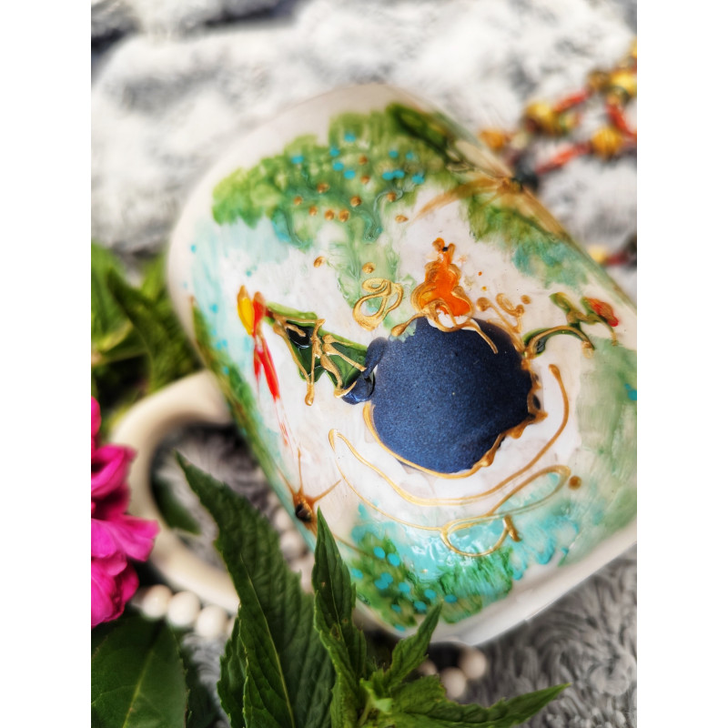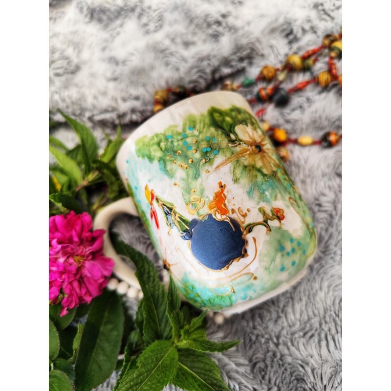 Porcelánový hrnek malovaný barvami na porcelán. Autorská malba je zafixována vysokou teplotou.