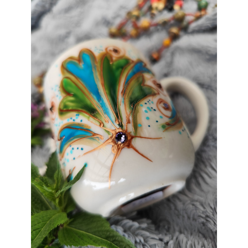 Porcelánový hrnek malovaný barvami na porcelán. Autorská malba je zafixována vysokou teplotou.