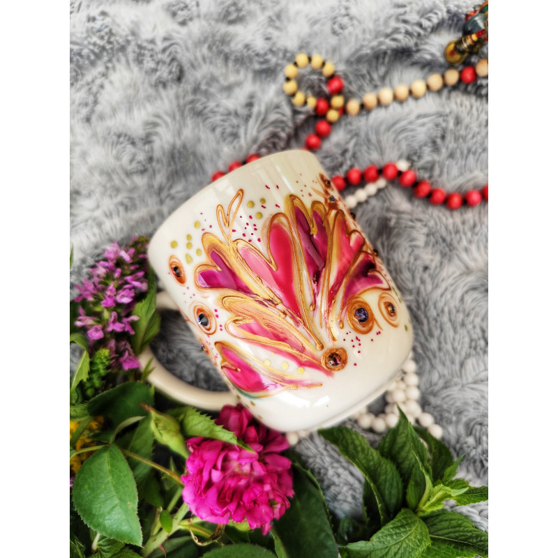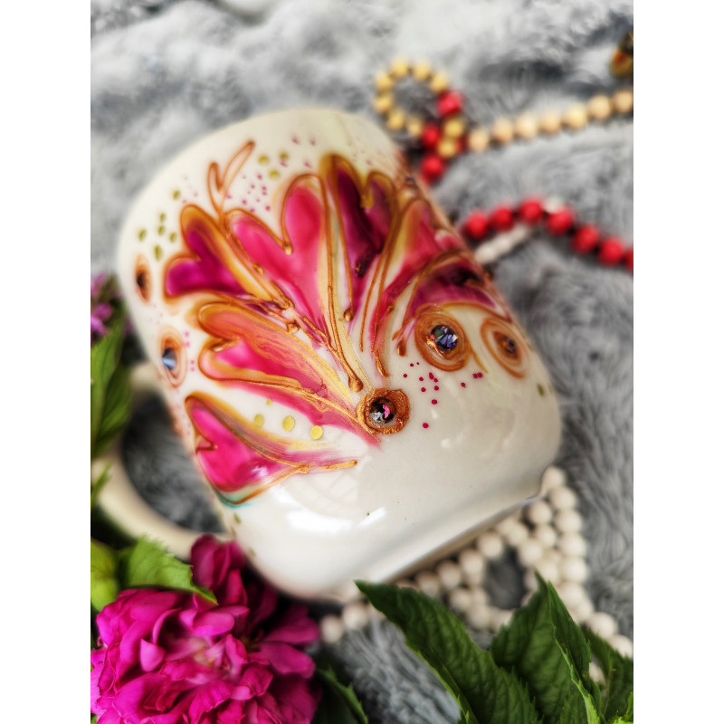 Porcelánový hrnek malovaný barvami na porcelán. Autorská malba je zafixována vysokou teplotou.