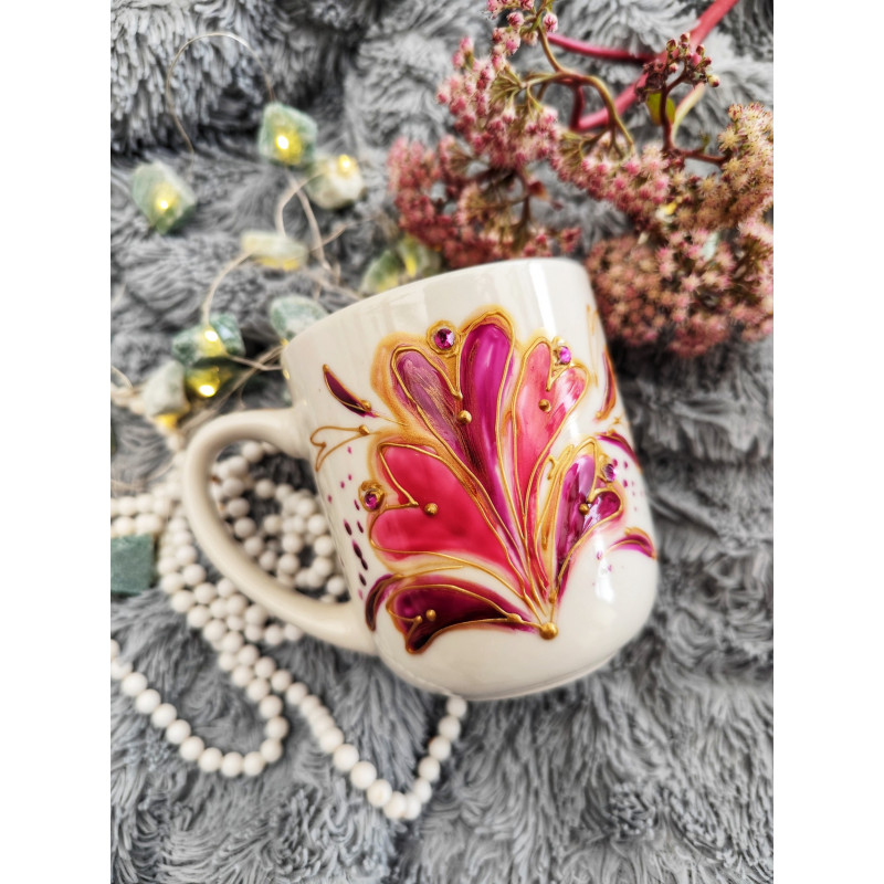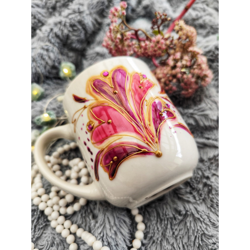 Porcelánový hrnek malovaný barvami na porcelán. Autorská malba je zafixována vysokou teplotou.