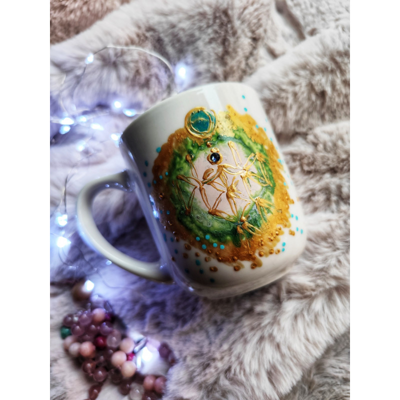 Porcelánový hrnek malovaný barvami na porcelán. Autorská malba je zafixována vysokou teplotou.