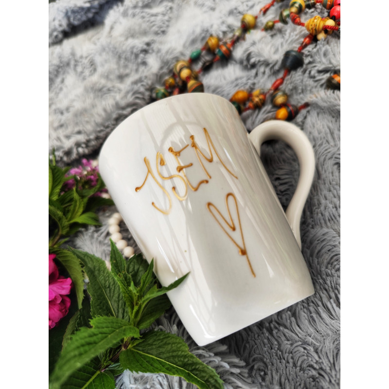 Porcelánový hrnek malovaný barvami na porcelán. Autorská malba je zafixována vysokou teplotou.
