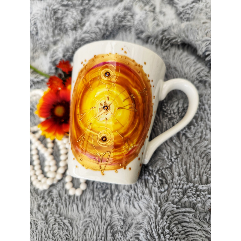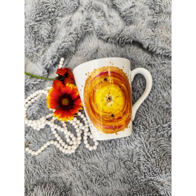 Porcelánový hrnek malovaný barvami na porcelán. Autorská malba je zafixována vysokou teplotou.