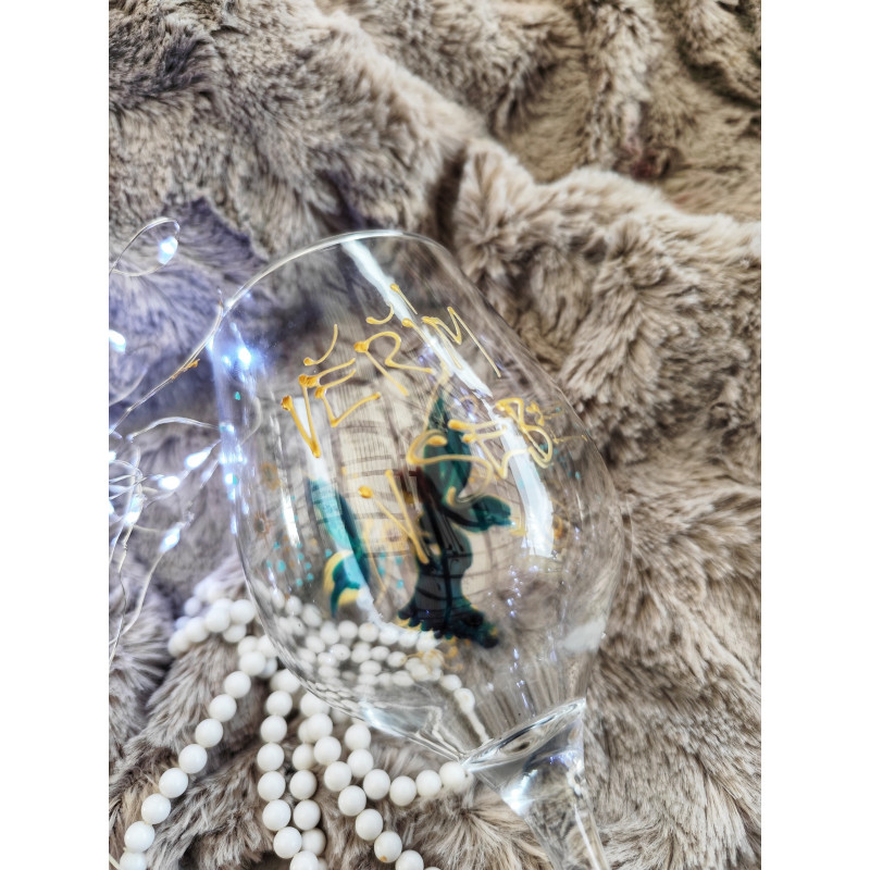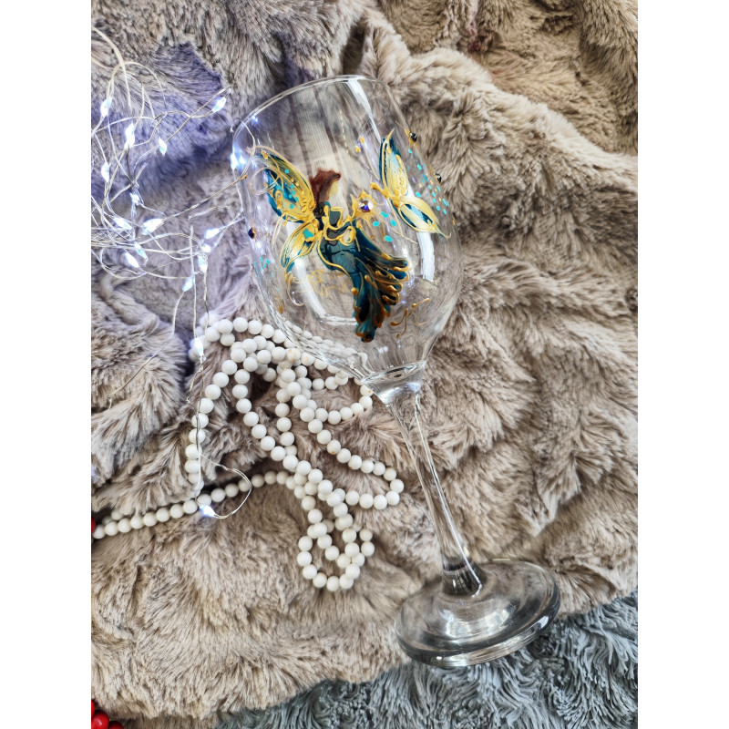 sklenička na víno, malovaná barvami na sklo. Autorská malba je zafixována vysokou teplotou a doplněna kamínky Swarovski.