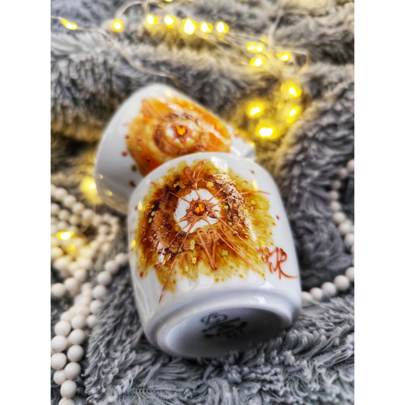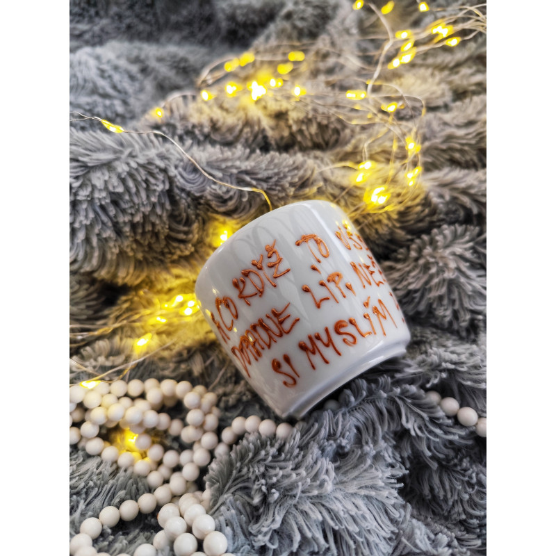 Porcelánový hrnek BEZ OUŠKA malovaný barvami na porcelán. Autorská malba je zafixována vysokou teplotou.