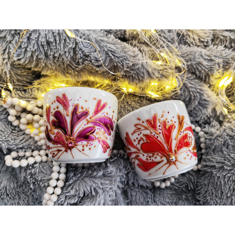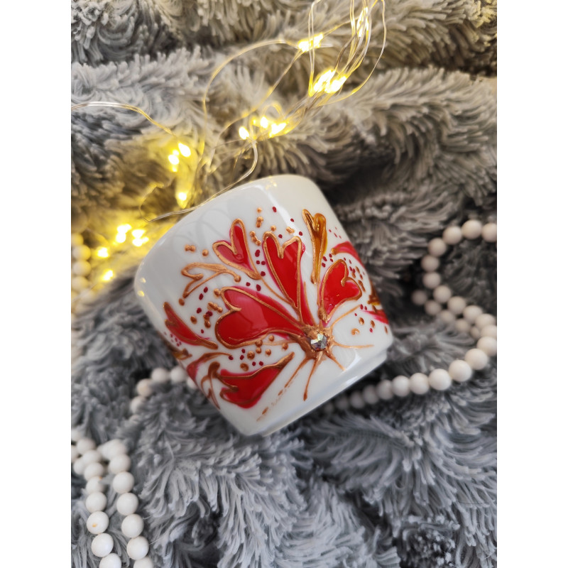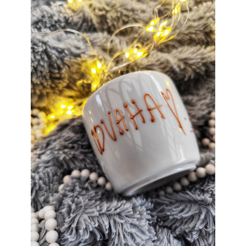 Porcelánový hrnek BEZ OUŠKA malovaný barvami na porcelán. Autorská malba je zafixována vysokou teplotou.