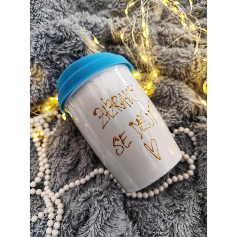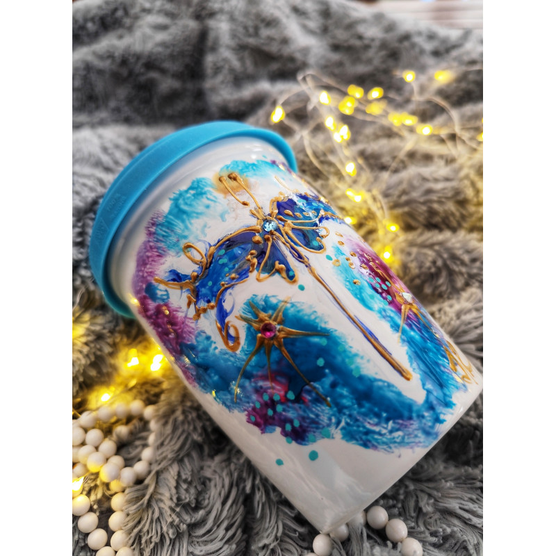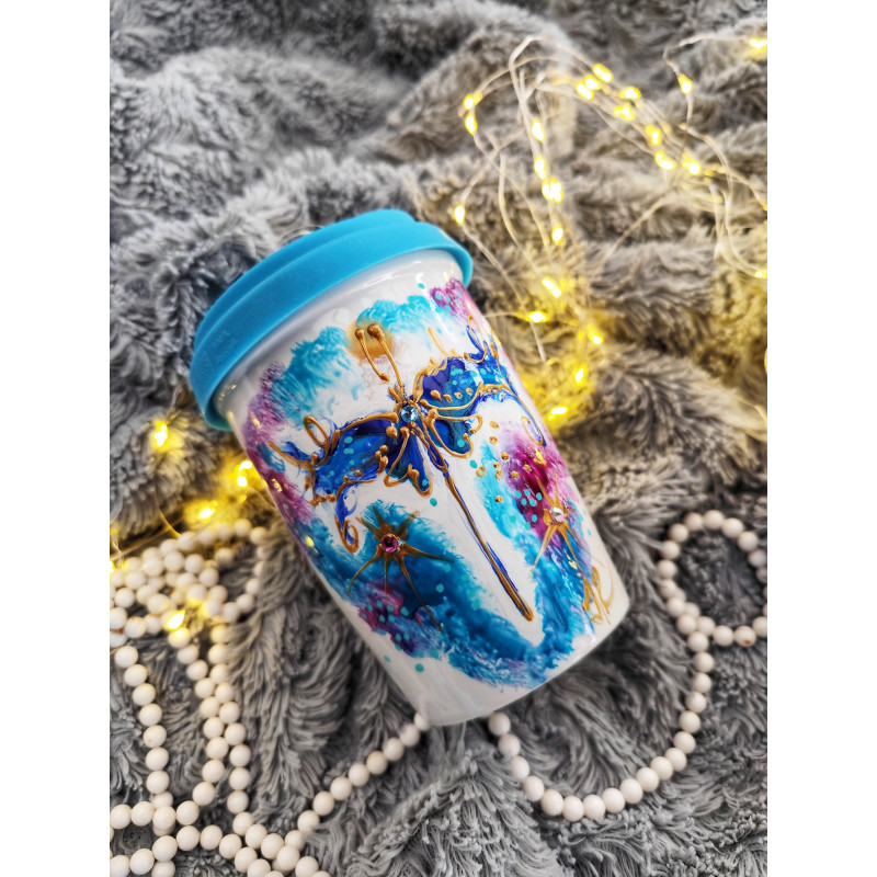 Porcelánový termo hrnek s dvojitou stěnou (TO GO) malovaný barvami na porcelán. Autorská malba je zafixována vysokou teplotou. Doplněna KAMÍNKY SWAROVSKI. bez textu